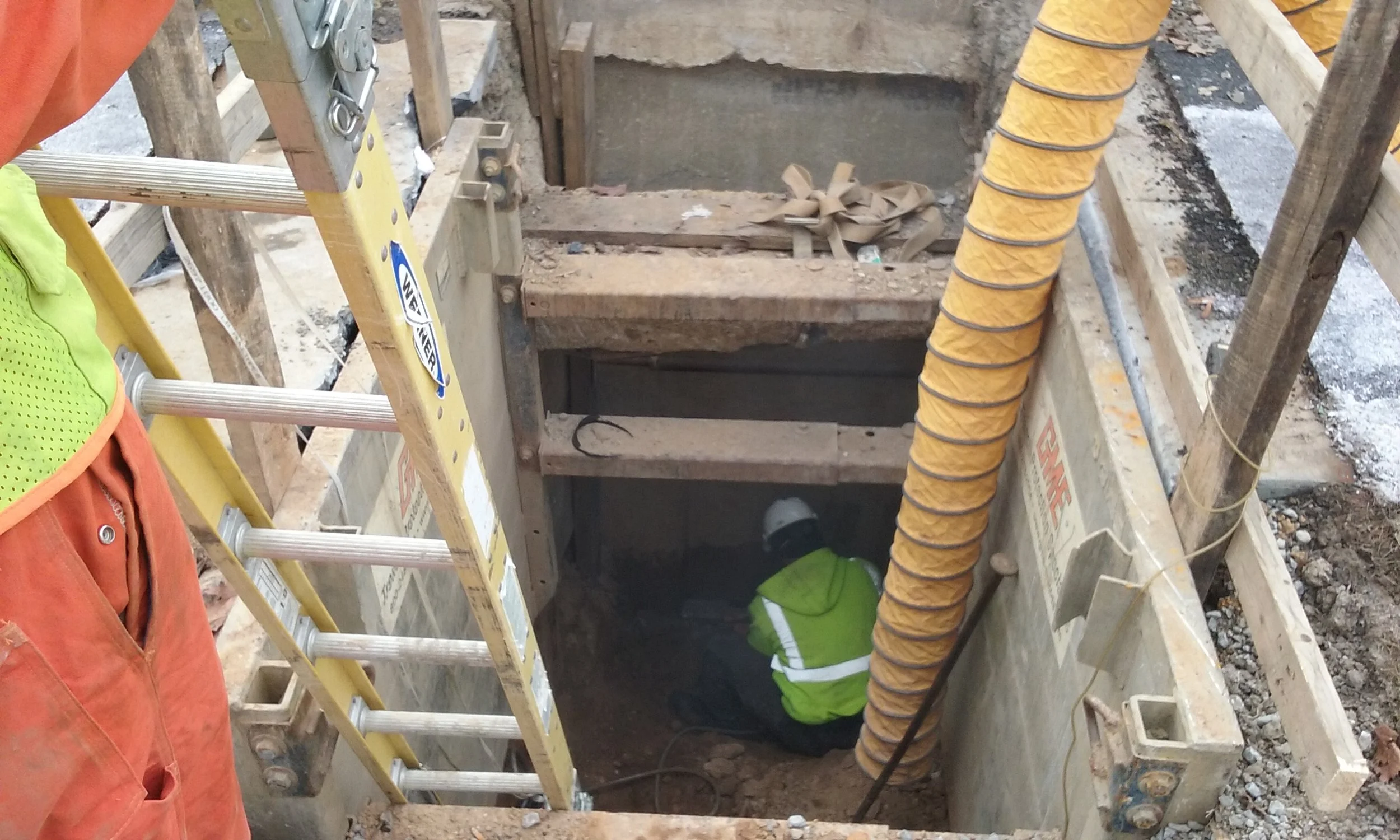 The contractor worked at the west side of Monroe Street and 8th Street NE, saw cutting the side of the existing manhole west vault for proposed 8-way fiber glass conduits installation.